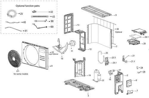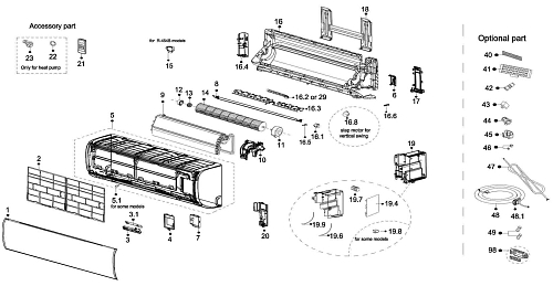 По вопросу приобретения отсутствующих запчастей, которые отображены в заводской схеме кондиционера, свяжитесь с персональным менеджером