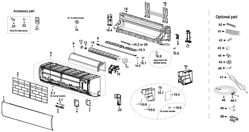 По вопросу приобретения отсутствующих запчастей, которые отображены в заводской схеме кондиционера, свяжитесь с персональным менеджером