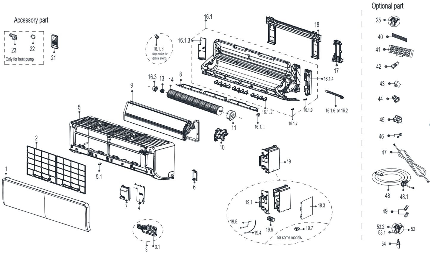 По вопросу приобретения отсутствующих запчастей, которые отображены в заводской схеме кондиционера, свяжитесь с персональным менеджером