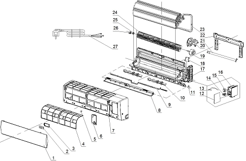 По вопросу приобретения отсутствующих запчастей, которые отображены в заводской схеме кондиционера, свяжитесь с персональным менеджером