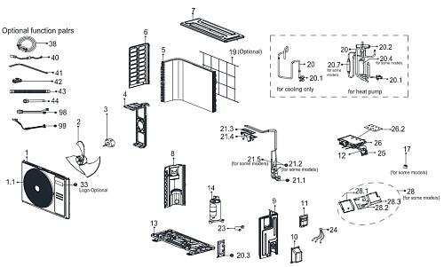 По вопросу приобретения отсутствующих запчастей, которые отображены в заводской схеме кондиционера, свяжитесь с персональным менеджером