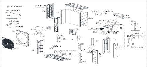 По вопросу приобретения отсутствующих запчастей, которые отображены в заводской схеме кондиционера, свяжитесь с персональным менеджером