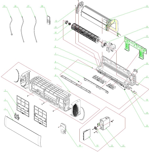 По вопросу приобретения отсутствующих запчастей, которые отображены в заводской схеме кондиционера, свяжитесь с персональным менеджером